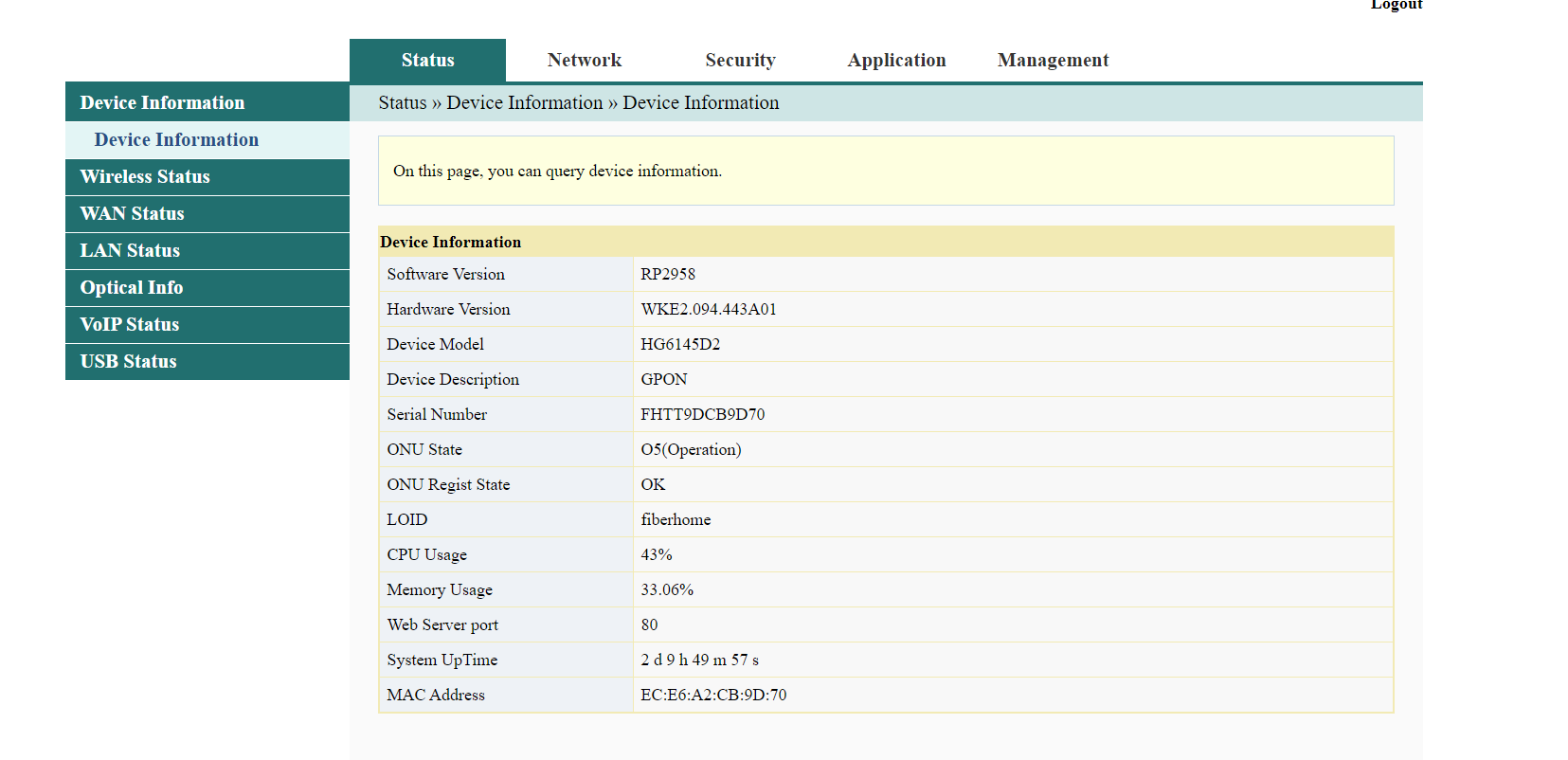 user password fiberhome